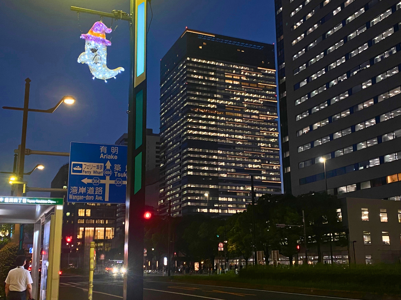 例年設置させて頂いている「豊洲シェルコート商店会」様の街路樹イルミネーションと、「豊洲商友会」様のハロウィンイルミネーションを、今年は例年より早く9月17日より点灯いたしました!